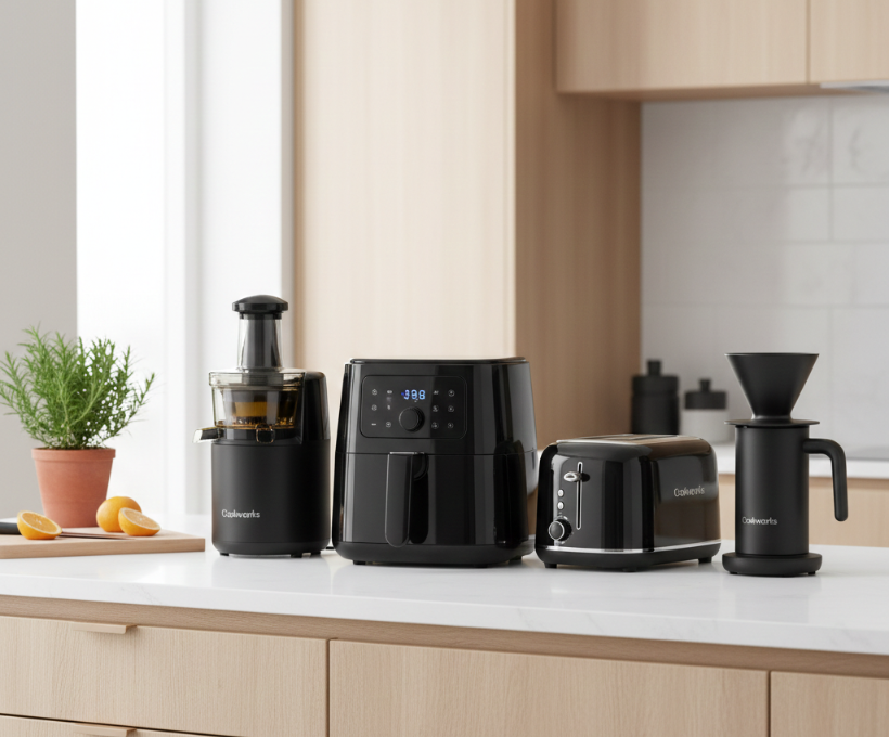 • Uniformity: By choosing a consistent color palette—like the black finish found on our Cookworks Air Fryers and Juicers—you create a visual flow that makes even small kitchens feel larger and more expensive.